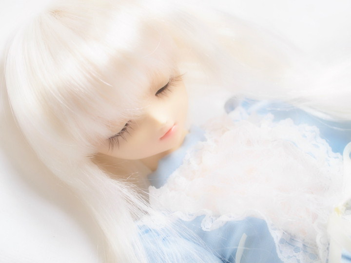阿梨ちゃん、デフォドレスを着せたままスノーホワイトのののアクリルケースに
